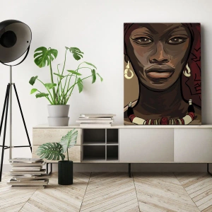 Bild auf Leinwand - Leinwandbild - Porträt einer Frau mit rotem Turban auf beigem Hintergrund - 100x70cm - Venus aus Ebenholz - Moderne Wanddekoration für Wohnzimmer und Schlafzimmer ARTTOR