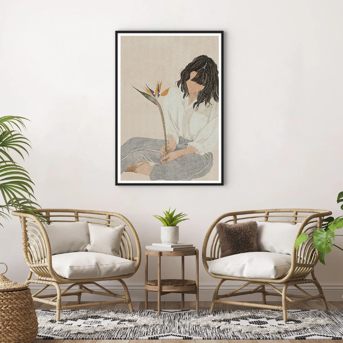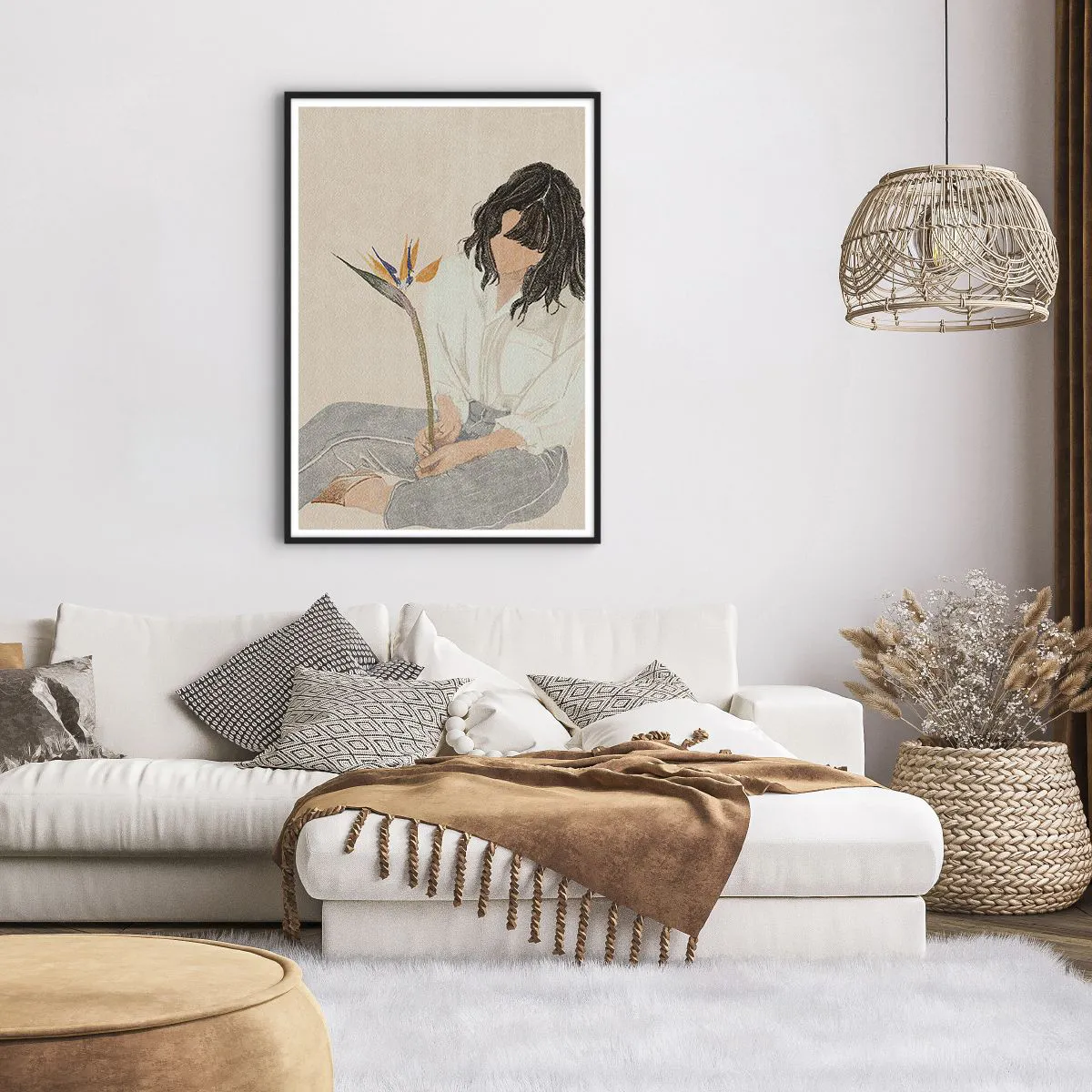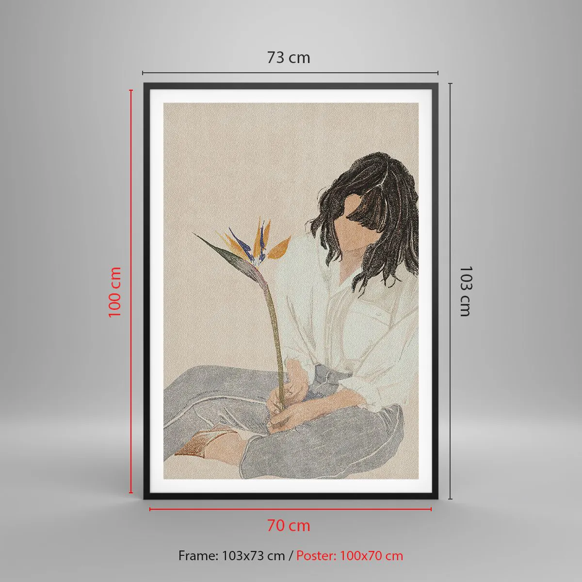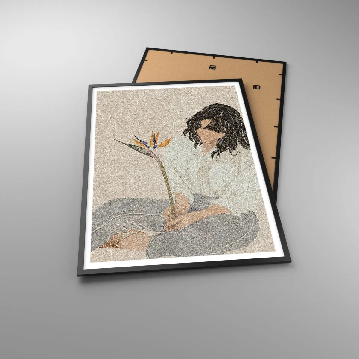Poster in einem schwarzem Rahmen - Porträt mit einer exotischen Blume - 70x100 cm