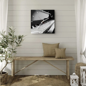 Die Uhr besteht aus 4 mm dickem Sicherheitsglas Glas. Die Herstellungstechnologie der Uhr entspricht der Sicherheitsklasse 2B2 gemäß der Norm PN-EN 12600: 2004, die Stoßfestigkeit garantiert. Die Uhr auf dem Glas ist bereit zu hängen - es hat einen Metallanhänger, einen Anhänger auf der Rückseite der Uhr und einen Schaumstoffabstand, der einen gleichmäßigen Abstand zwischen der Uhr und der Wand reguliert. Die Uhr hat einen geräuschlosen Schwimmmechanismus, der von einer 1,5-V-Batterie betrieben wird - AA-Batterie inbegriffen).