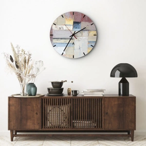Wanduhr - Glasuhr - Abstrakte geometrische Komposition in Pastellfarben - 30x30cm - Ruhe der Geometrie - Moderne Wanddekoration für Wohnzimmer, Küche und Schlafzimmer ARTTOR