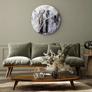 Wanduhr - Glasuhr - Eine abstrakte Komposition mit drei Figuren in Pastellfarben. - 30x30cm - Die geheimnisvolle Drei - Moderne Wanddekoration für Wohnzimmer und Schlafzimmer ARTTOR