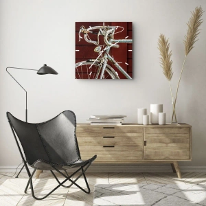 Die Uhr besteht aus 4 mm dickem Sicherheitsglas Glas. Die Herstellungstechnologie der Uhr entspricht der Sicherheitsklasse 2B2 gemäß der Norm PN-EN 12600: 2004, die Stoßfestigkeit garantiert. Die Uhr auf dem Glas ist bereit zu hängen - es hat einen Metallanhänger, einen Anhänger auf der Rückseite der Uhr und einen Schaumstoffabstand, der einen gleichmäßigen Abstand zwischen der Uhr und der Wand reguliert. Die Uhr hat einen geräuschlosen Schwimmmechanismus, der von einer 1,5-V-Batterie betrieben wird - AA-Batterie inbegriffen).