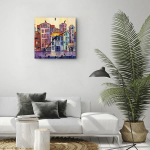 Wanduhr - Glasuhr - Stadt wie aus einem Märchen - 30x30 cm
