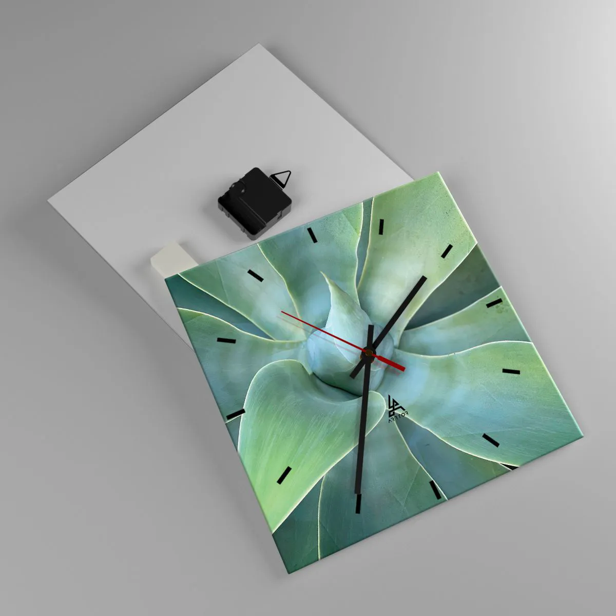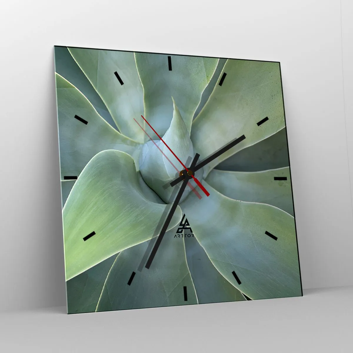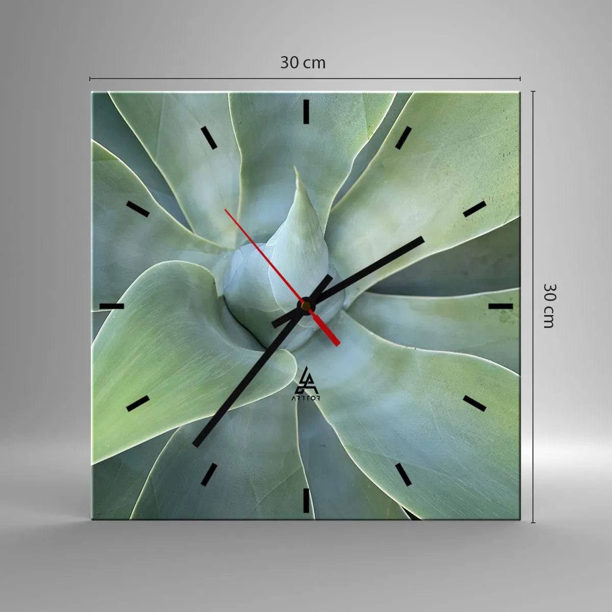 Wanduhr - Glasuhr - Dezente Agavenblätter in Grüntönen - 30x30cm - Geburt des Grüns - Moderne Wanddekoration für Wohnzimmer und Schlafzimmer ARTTOR