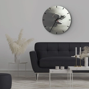 Die Uhr besteht aus 4 mm dickem Sicherheitsglas Glas. Die Herstellungstechnologie der Uhr entspricht der Sicherheitsklasse 2B2 gemäß der Norm PN-EN 12600: 2004, die Stoßfestigkeit garantiert. Die Uhr auf dem Glas ist bereit zu hängen - es hat einen Metallanhänger, einen Anhänger auf der Rückseite der Uhr und einen Schaumstoffabstand, der einen gleichmäßigen Abstand zwischen der Uhr und der Wand reguliert. Die Uhr hat einen geräuschlosen Schwimmmechanismus, der von einer 1,5-V-Batterie betrieben wird - AA-Batterie inbegriffen).