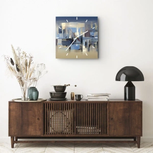 Wanduhr - Glasuhr - Blaue Konstruktion - 40x40 cm