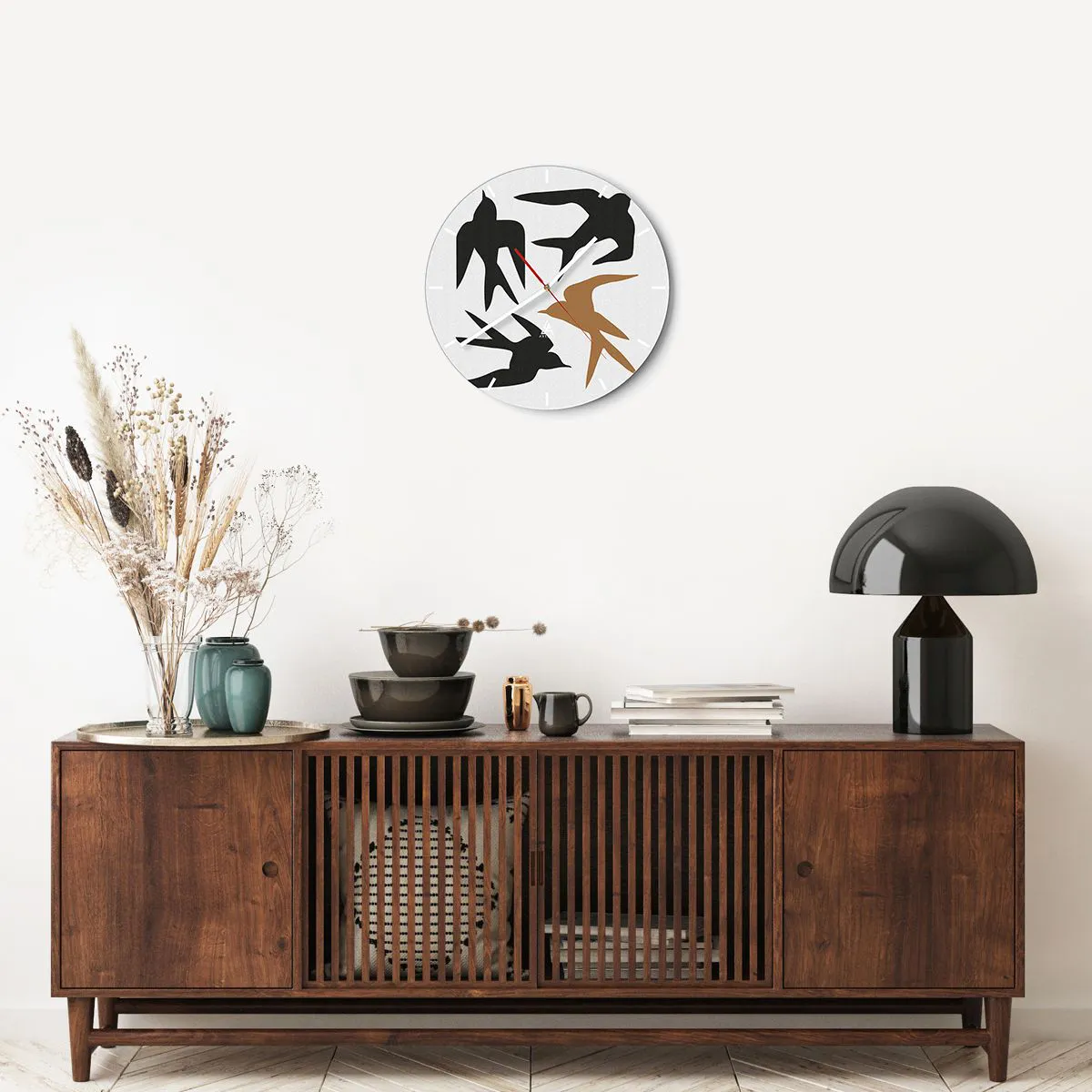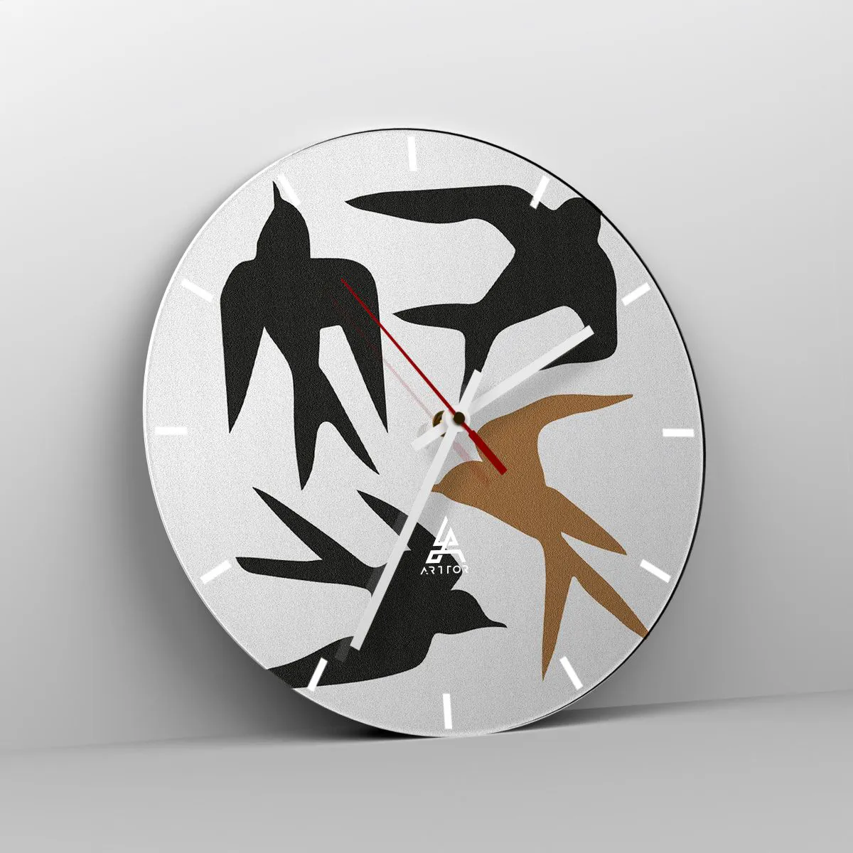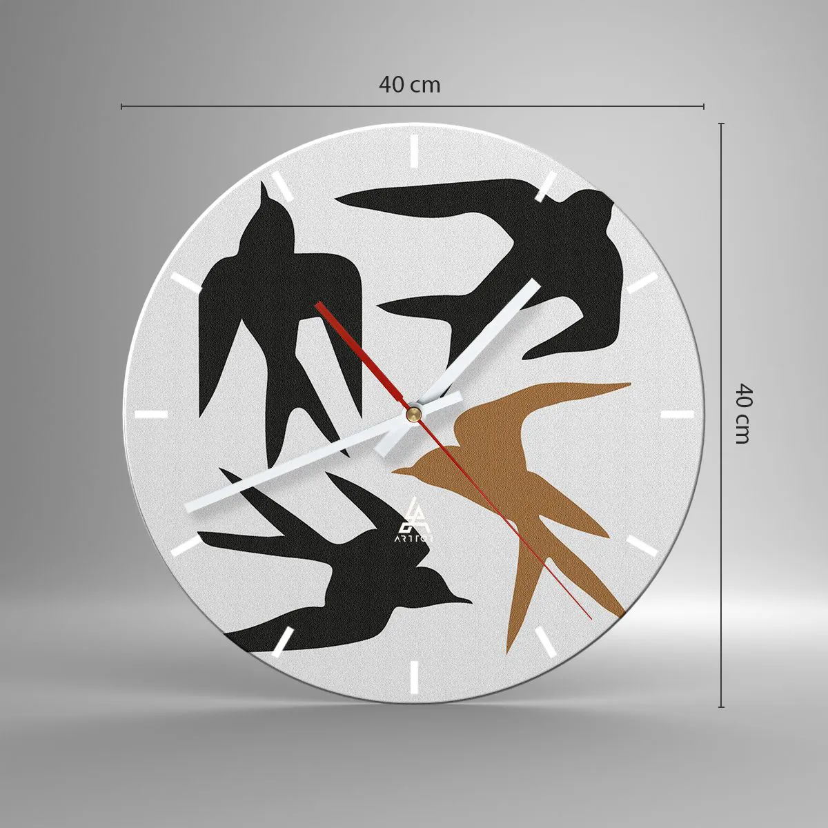 Wanduhr - Glasuhr - Schwalbenspaß - 40x40 cm
