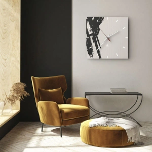Wanduhr - Glasuhr - Schwarze ausdrucksstarke Pinselstriche auf hellem Hintergrund - 30x30cm - Unaufhaltsamer Trieb - Moderne Wanddekoration für Wohnzimmer, Küche und Schlafzimmer ARTTOR