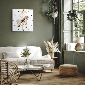 Wanduhr - Glasuhr - Ein Karussellpferd mit Schleife in zarten Pastelltönen - 30x30cm - Anmutiger Trab - Moderne Wanddekoration für Wohnzimmer und Schlafzimmer ARTTOR