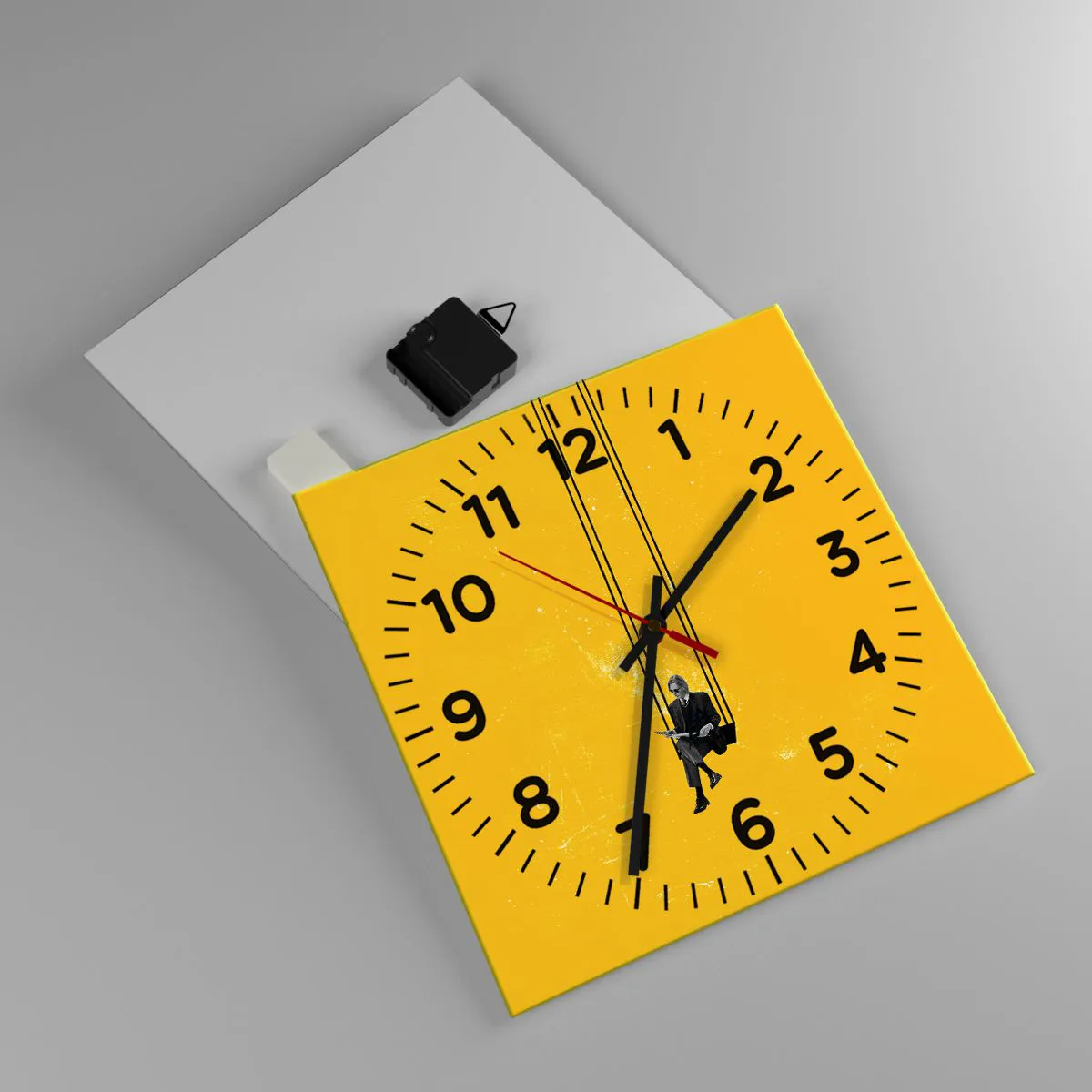 Die Uhr besteht aus 4 mm dickem Sicherheitsglas Glas. Die Herstellungstechnologie der Uhr entspricht der Sicherheitsklasse 2B2 gemäß der Norm PN-EN 12600: 2004, die Stoßfestigkeit garantiert. Die Uhr auf dem Glas ist bereit zu hängen - es hat einen Metallanhänger, einen Anhänger auf der Rückseite der Uhr und einen Schaumstoffabstand, der einen gleichmäßigen Abstand zwischen der Uhr und der Wand reguliert. Die Uhr hat einen geräuschlosen Schwimmmechanismus, der von einer 1,5-V-Batterie betrieben wird - AA-Batterie inbegriffen).