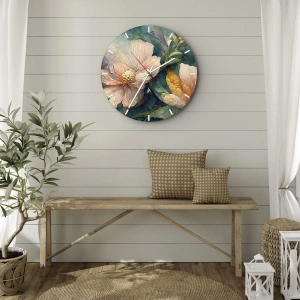 Wanduhr - Glasuhr - Zarte Blüten in Pastellfarben - 30x30cm - Pure Subtilität - Moderne Wanddekoration für Wohnzimmer und Schlafzimmer ARTTOR