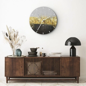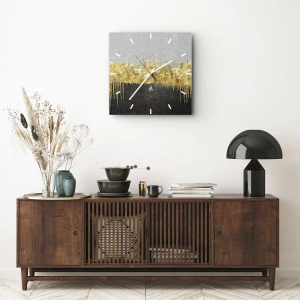 Wanduhr - Glasuhr - Goldene Reflexionen in einer künstlerischen Komposition vor einem schwarz-grauen Hintergrund - 30x30cm - Nach innen und nach oben - Moderne Wanddekoration für Wohnzimmer, Küche und Schlafzimmer ARTTOR