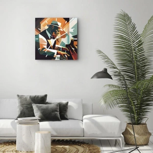 Wanduhr - Glasuhr - Abstrakter Musiker, der in warmen Farben Klavier spielt. - 30x30cm - Alles vom Jazz - Moderne Wanddekoration für Wohnzimmer und Schlafzimmer ARTTOR