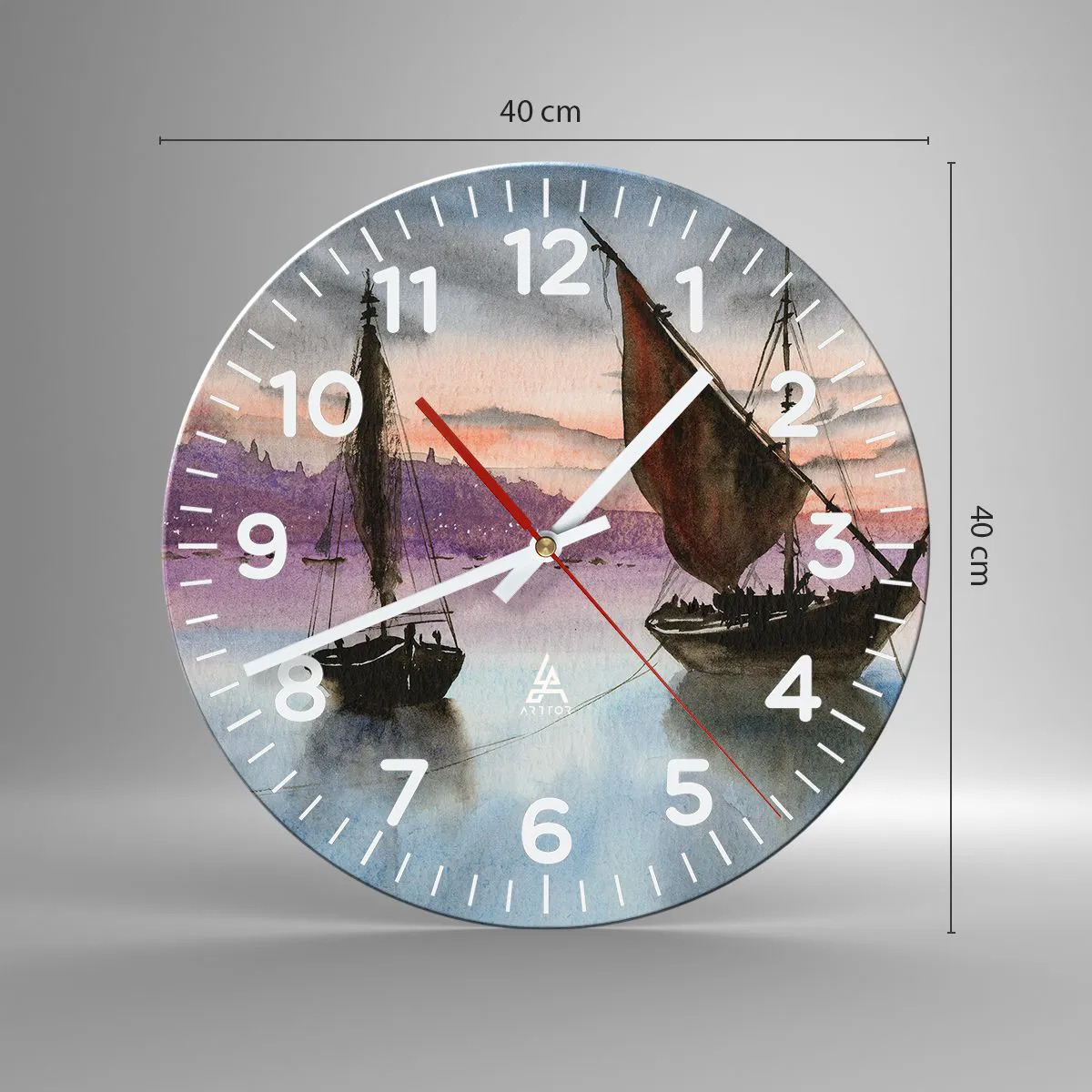 Wanduhr - Glasuhr - Abend am Hafen - 40x40 cm