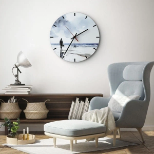 Wanduhr - Glasuhr - Eine Figur am Strand mit Blick aufs Meer - 30x30cm - Gespräch mit dem Meer - Moderne Wanddekoration für Wohnzimmer, Küche und Schlafzimmer ARTTOR