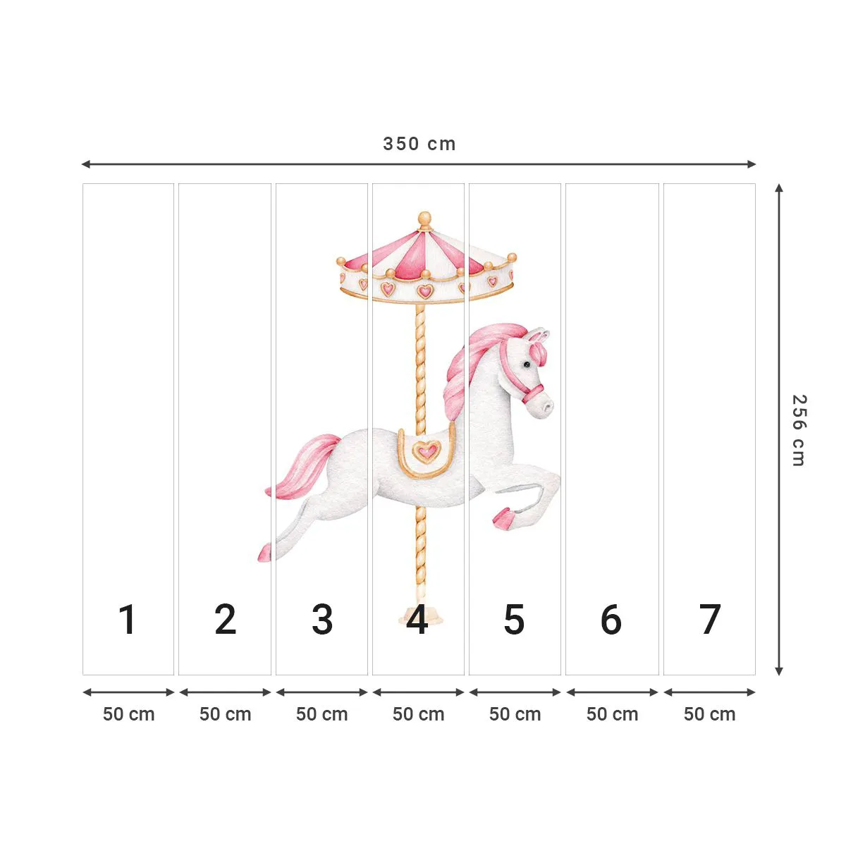 Fototapete Premium Sand - Er legte los - Pferd, Karussell, Mädchenhaft - 350x256 cm