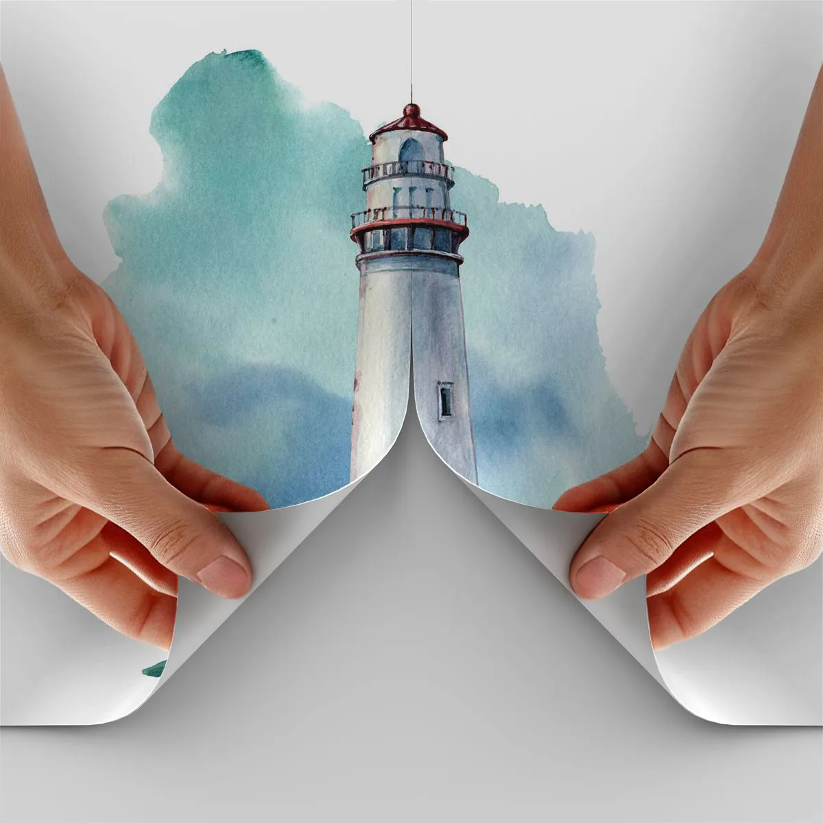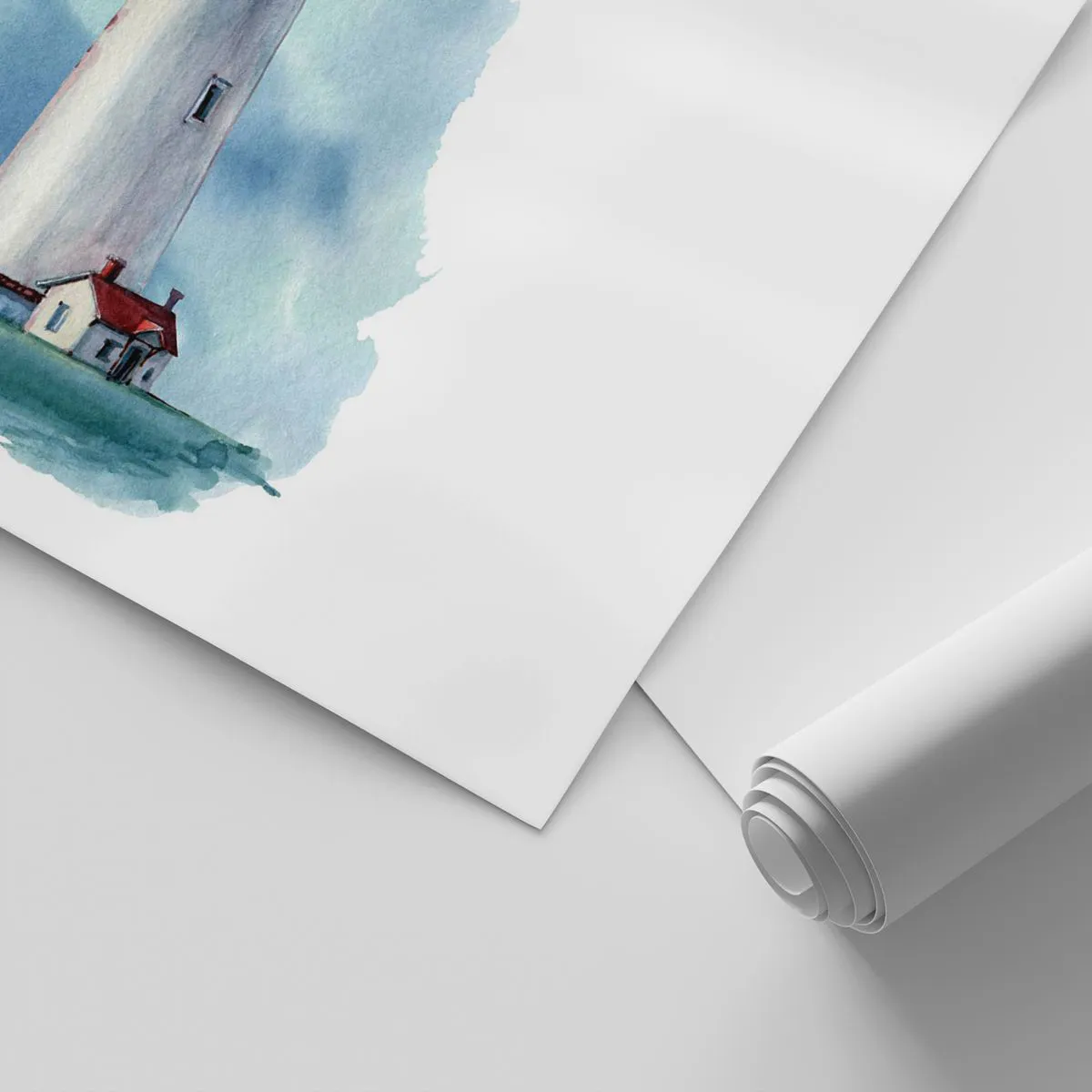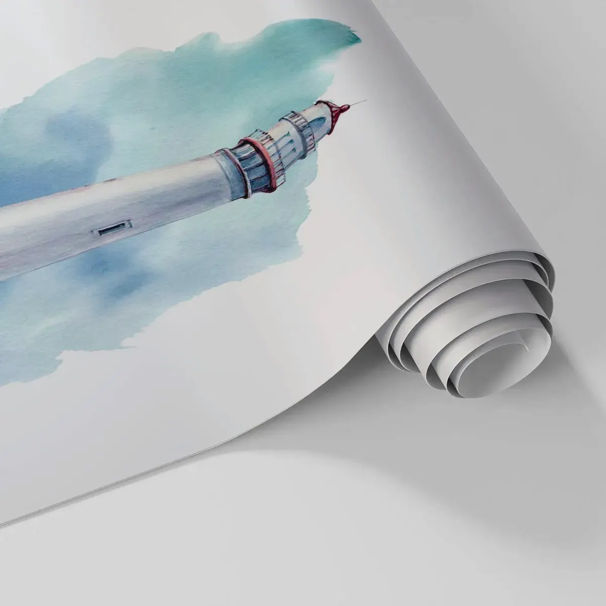 Fototapete Standard Eco - Aquarell-Illustration eines Leuchtturms gegen den Himmel - 100x70cm - Sanfte Schwester vom Blau - Moderne Wanddekoration für Wohnzimmer und Schlafzimmer ARTTOR