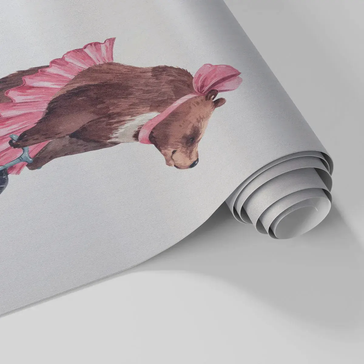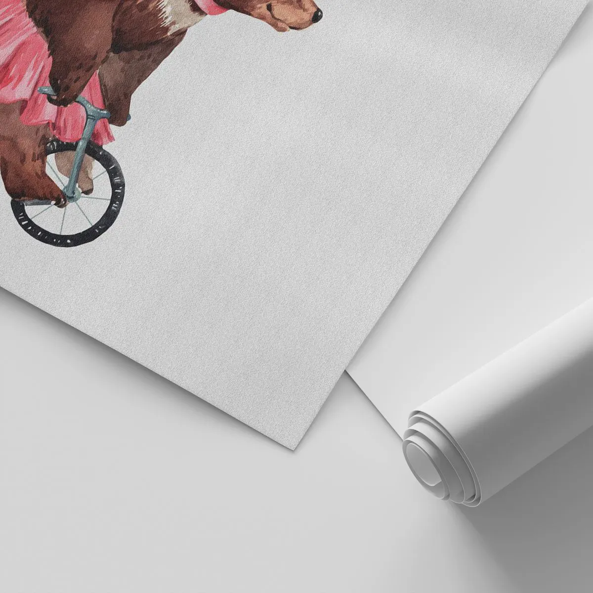 Fototapete Standard Eco - Ein Teddybär in einem rosa Rock fährt auf einem kleinen Fahrrad - 100x70cm - Was für ein Affentheater! - Moderne Wanddekoration für Wohnzimmer und Schlafzimmer ARTTOR