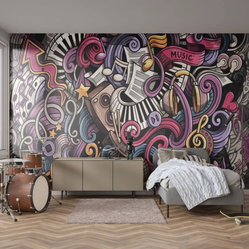Selbstklebende Fototapete Deluxe Sticker - Komplizierte Melodie - Musik, Wandgemälde, Graffiti - 300x210 cm
