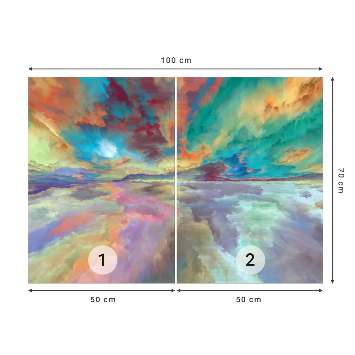 Fototapete Premium Sand - Abstrakte Landschaft in intensiven Farben - 100x70cm - Zwei Himmel - Moderne Wanddekoration für Wohnzimmer und Schlafzimmer ARTTOR