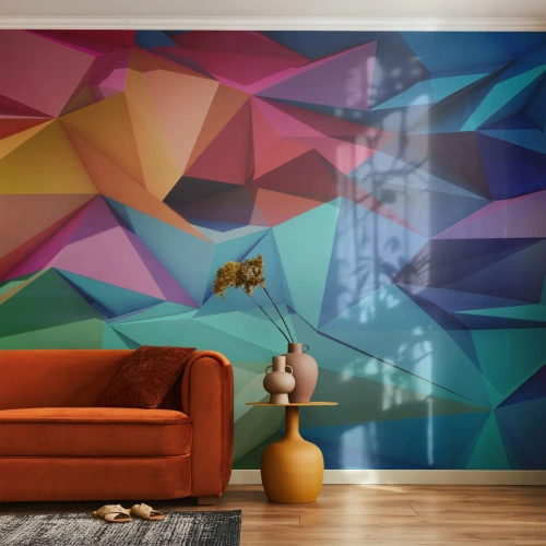 Fototapete Standard Eco - Regenbogen-Origami - Abstraktion, 3D, Grafik - 200x140 cm