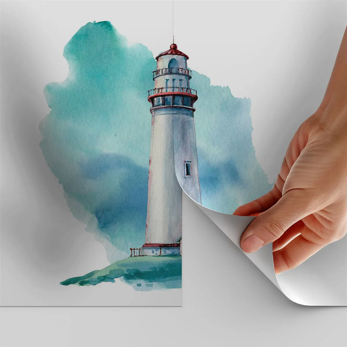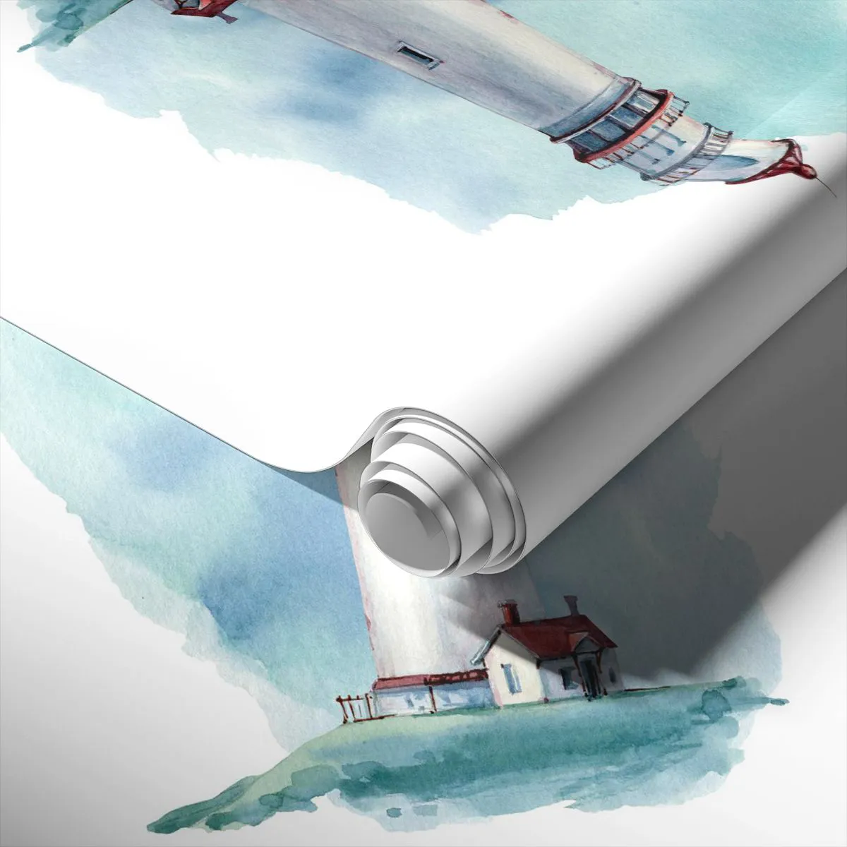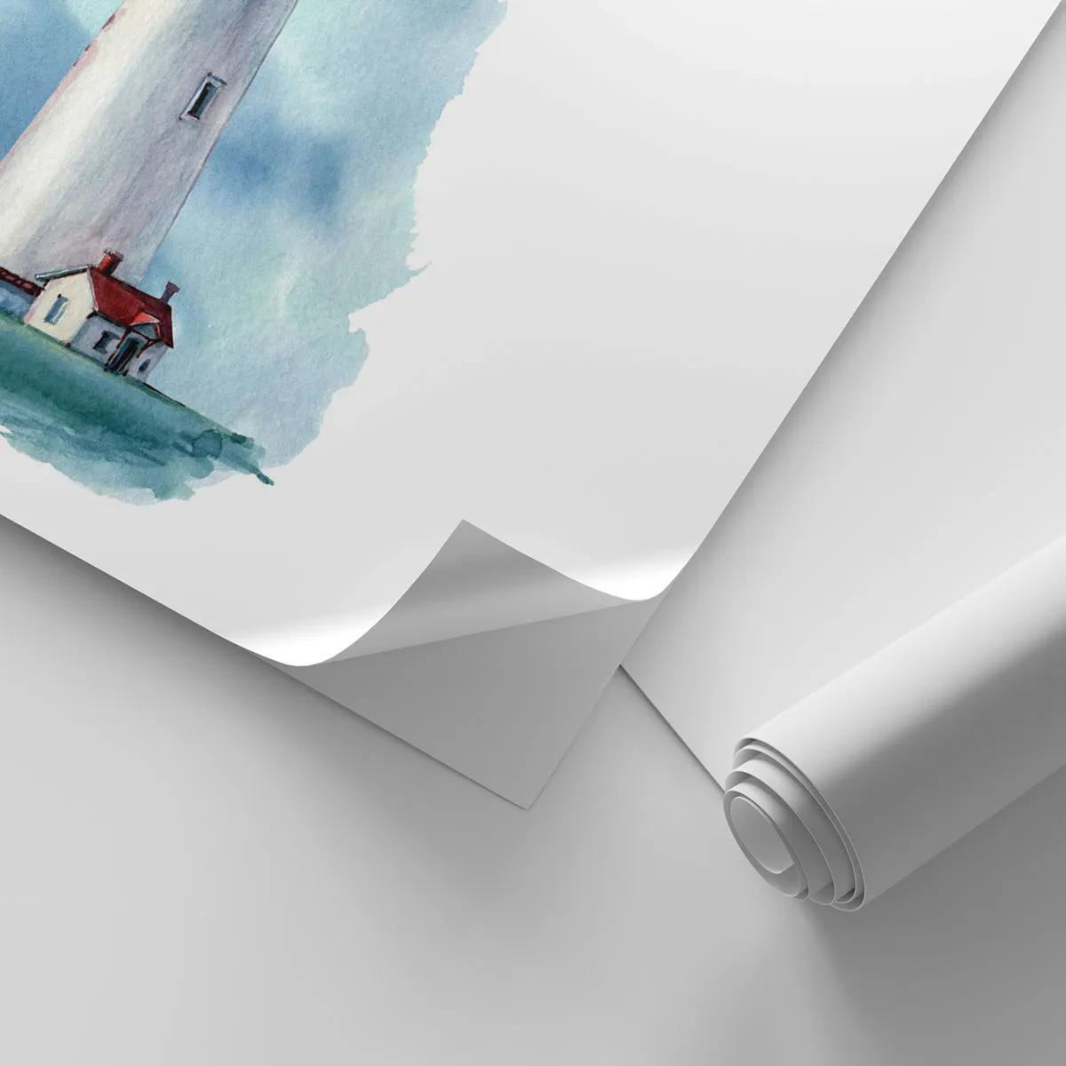Selbstklebende Fototapete Deluxe Sticker - Sanfte Schwester vom Blau - Leuchtturm, Strand, Zeichnung - 300x210 cm