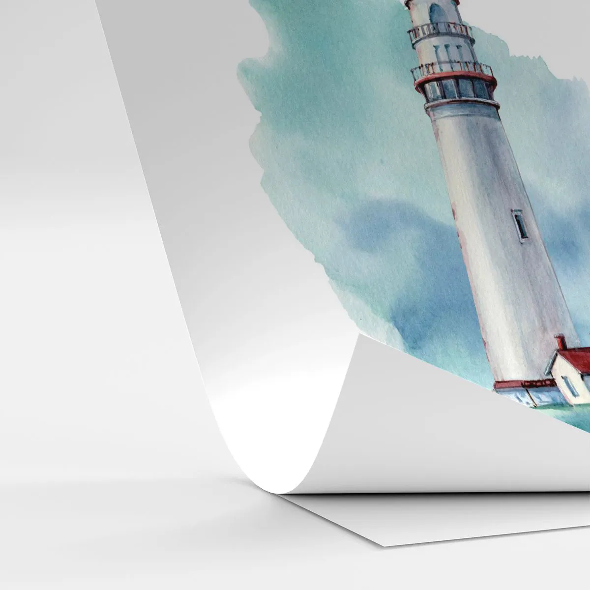 • Leuchtturm, Meer, Zeichnung, Für Kinder, Nautik, Pastell, Kunst, Für das Büro, für das Arbeitszimmer, für das Esszimmer, für das Badezimmer, für das Kinderzimmer, für den Flur, für das Wohnzimmer, für das Schlafzimmer, Weiß Blau