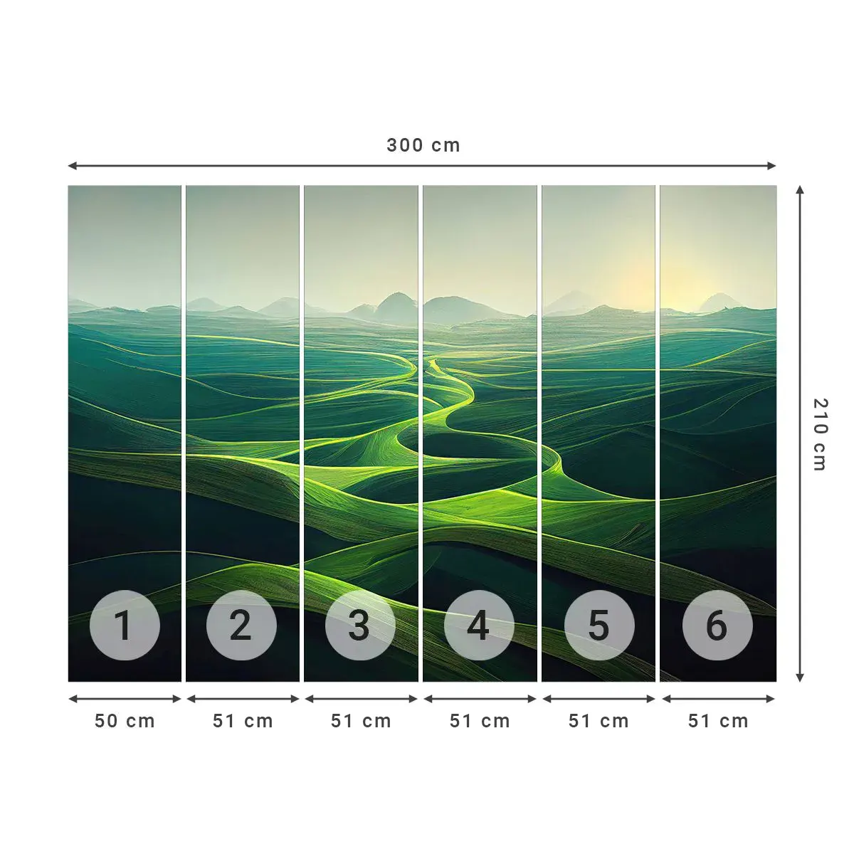 Selbstklebende Fototapete Deluxe Sticker - In den grünen Tälern - Landschaft, Wiese, Täler - 300x210 cm
