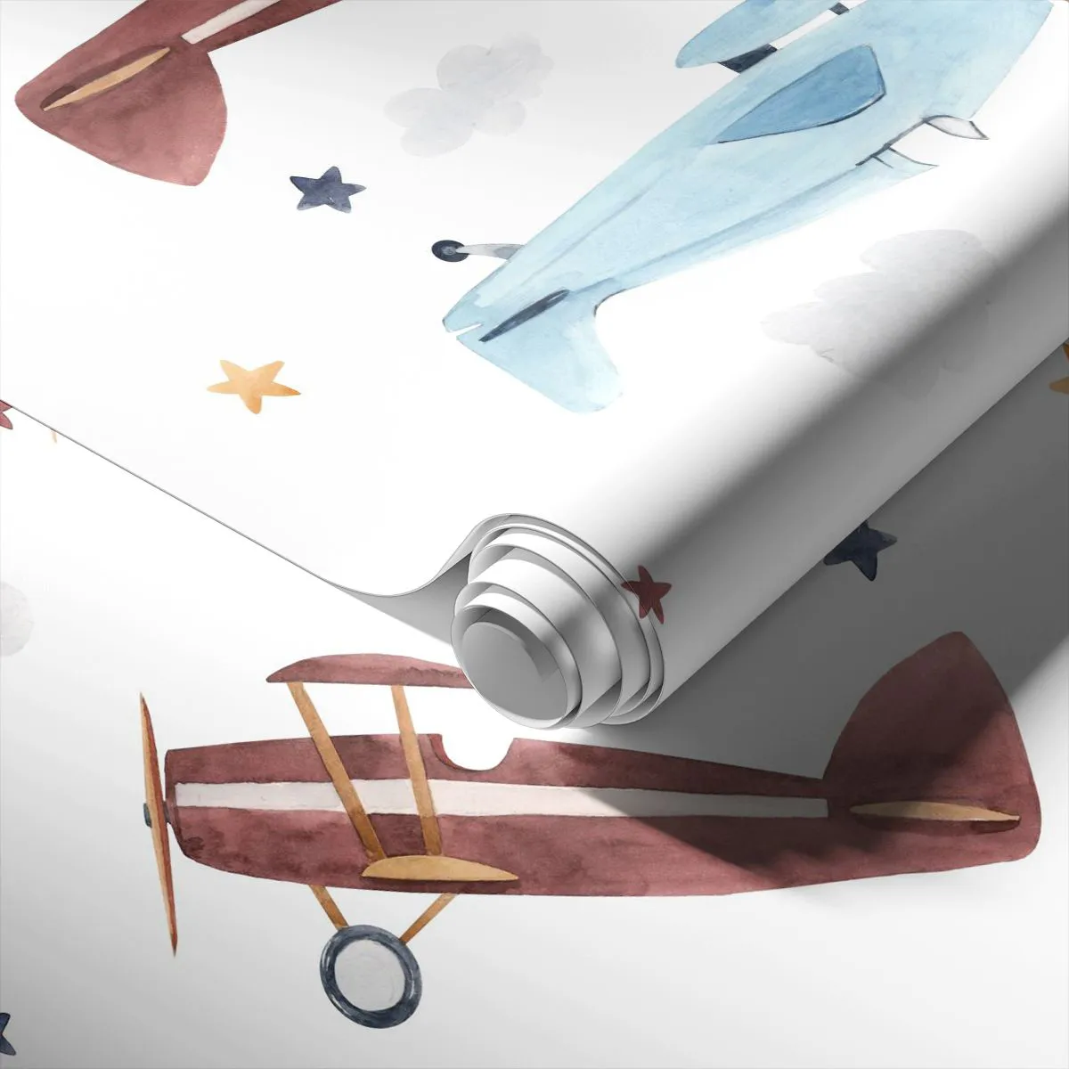 Fototapete Standard Eco - Wir warten, Herr Pilot! - Flugzeuge, Retro, Kinder - 200x140 cm