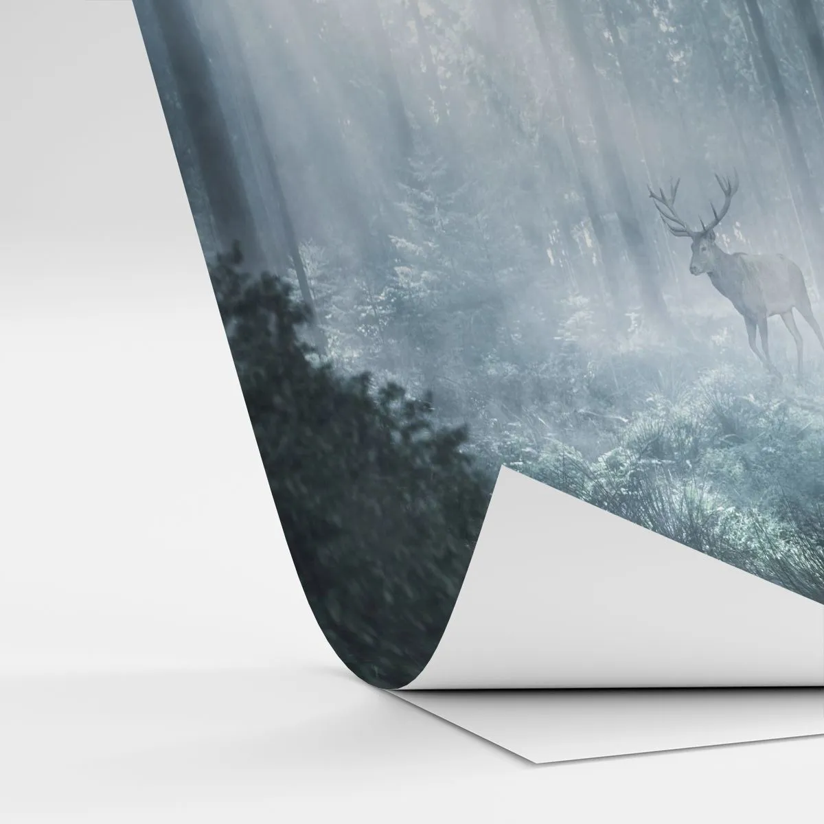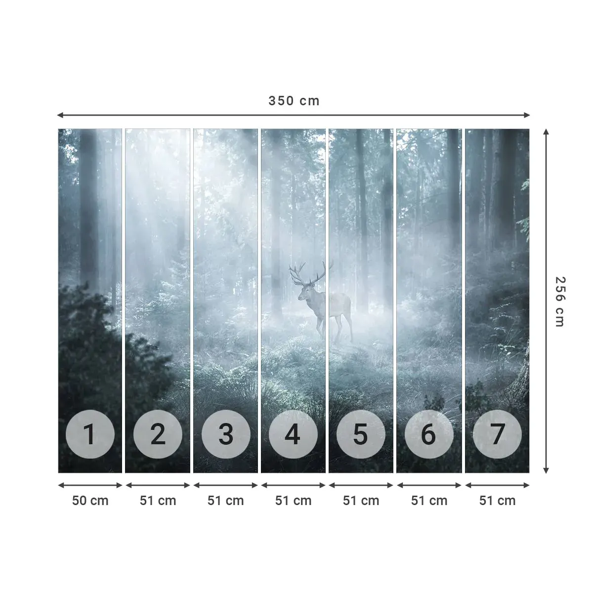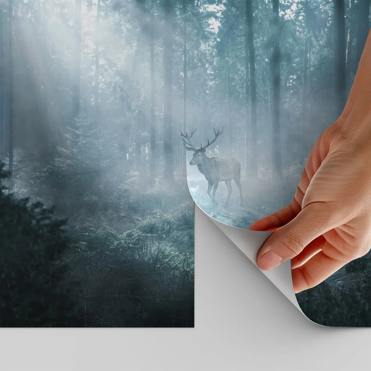 Selbstklebende Fototapete Deluxe Sticker - Morgenvisite auf dem Grundstück - Landschaft, Wald, Reh - 350x256 cm
