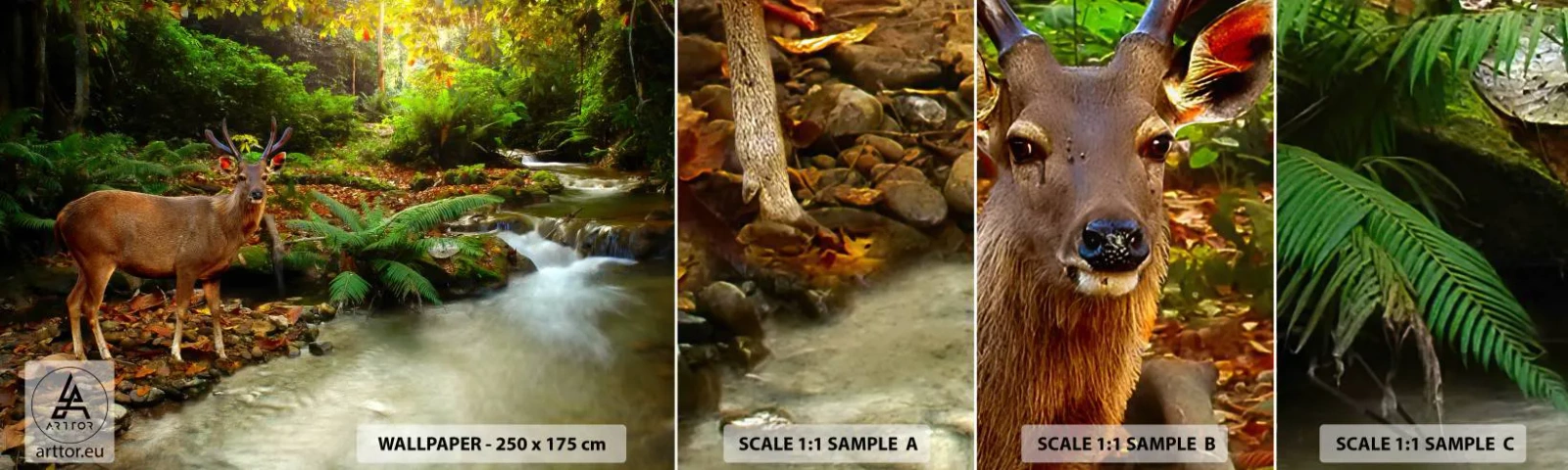 Fototapetenmuster Standard Eco - Willkommen in meiner Welt - Landschaft, Tiere, Reh - 100x30 cm