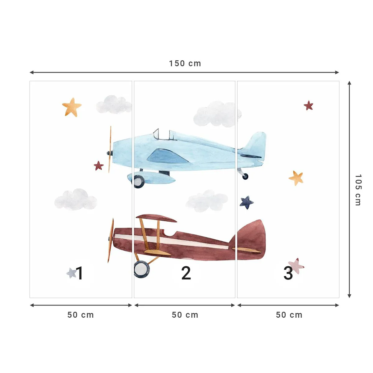 Fototapete Premium Sand - Wir warten, Herr Pilot! - Flugzeuge, Retro, Kinder - 150x105 cm