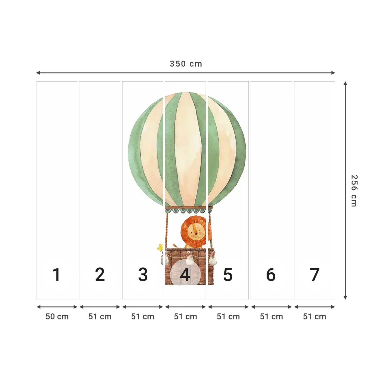 Selbstklebende Fototapete Deluxe Sticker - Leons Reisen - Ballon, Löwe, Kinder - 350x256 cm
