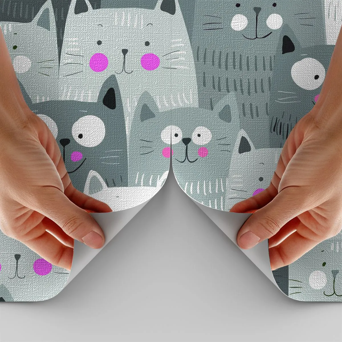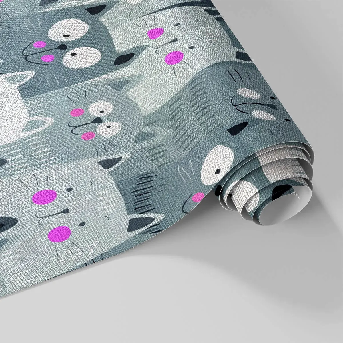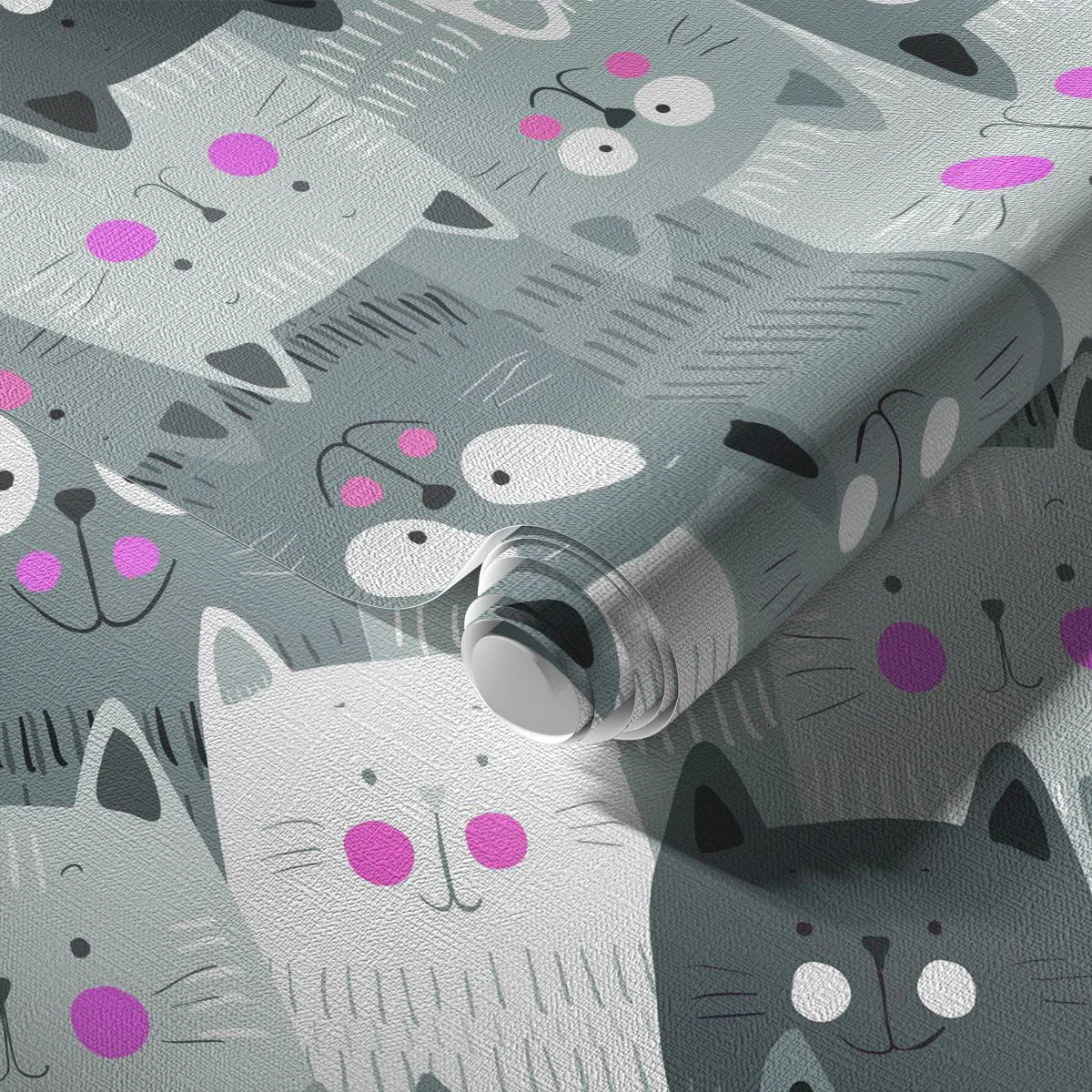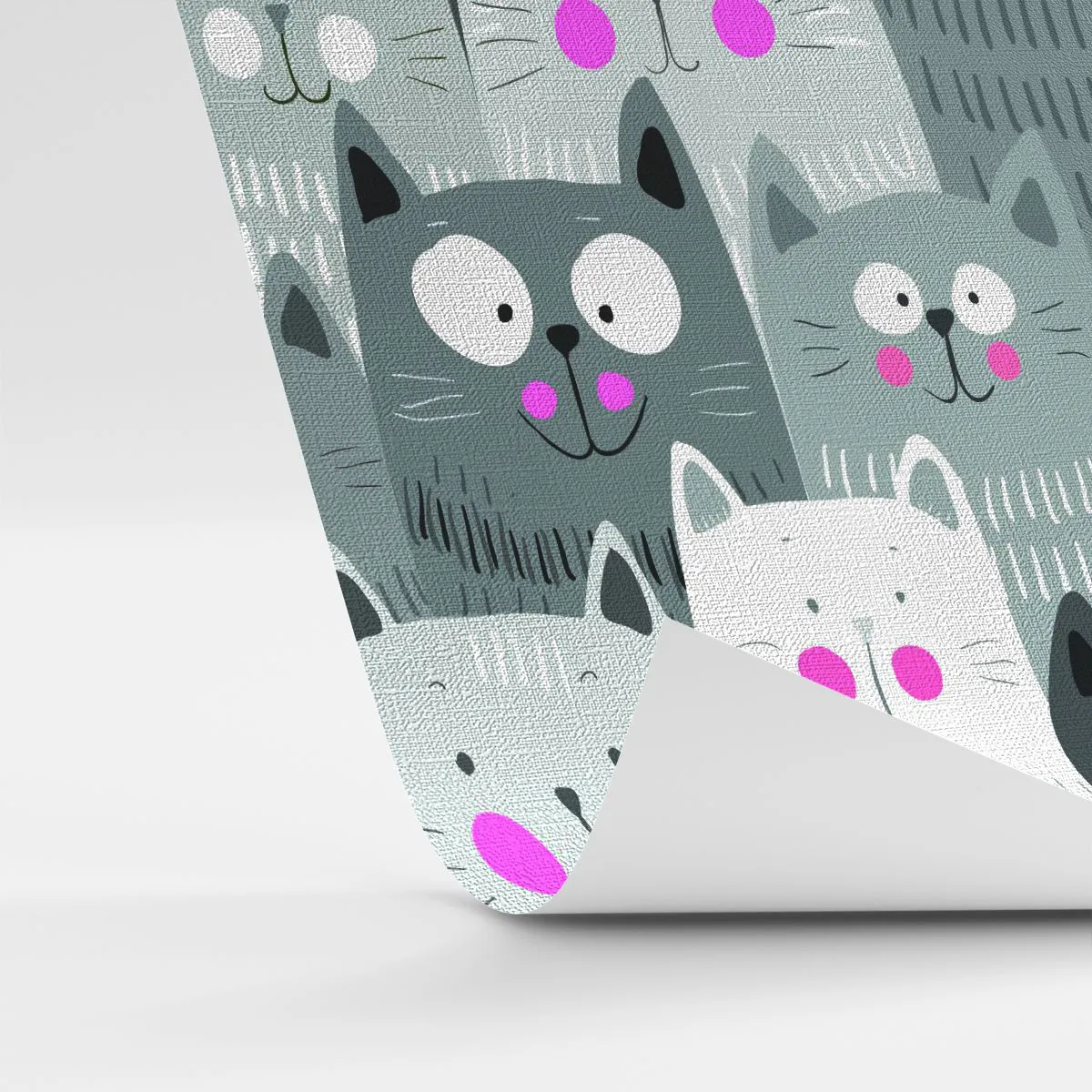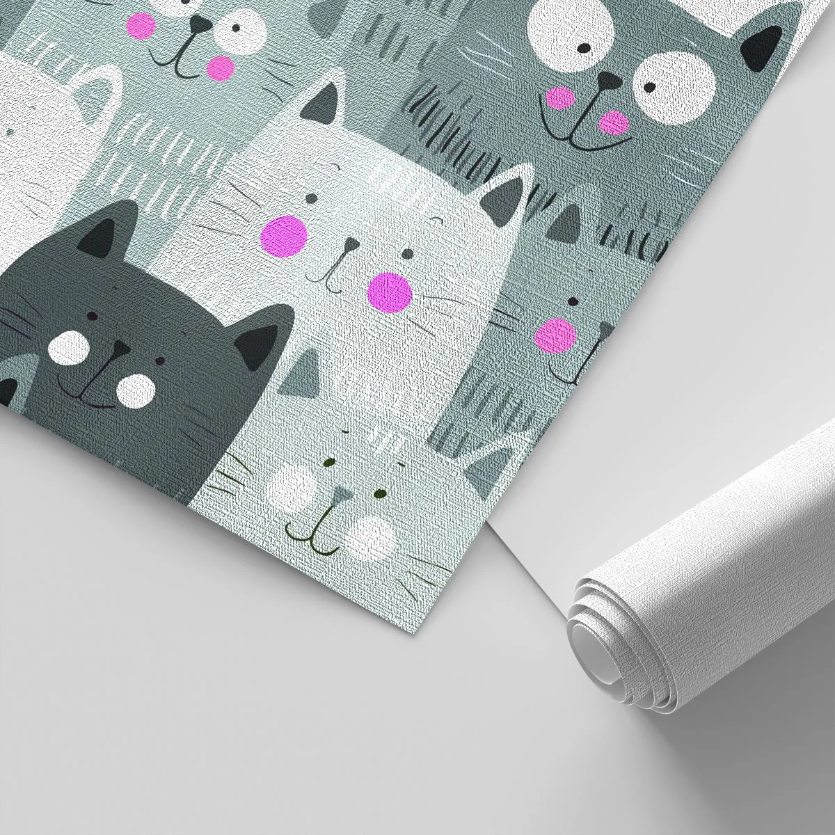 Fototapete Premium Canvas - Ein lustiges Muster mit Katzen in Grautönen - 100x70cm - Katzenwelt - Moderne Wanddekoration für Wohnzimmer und Schlafzimmer ARTTOR