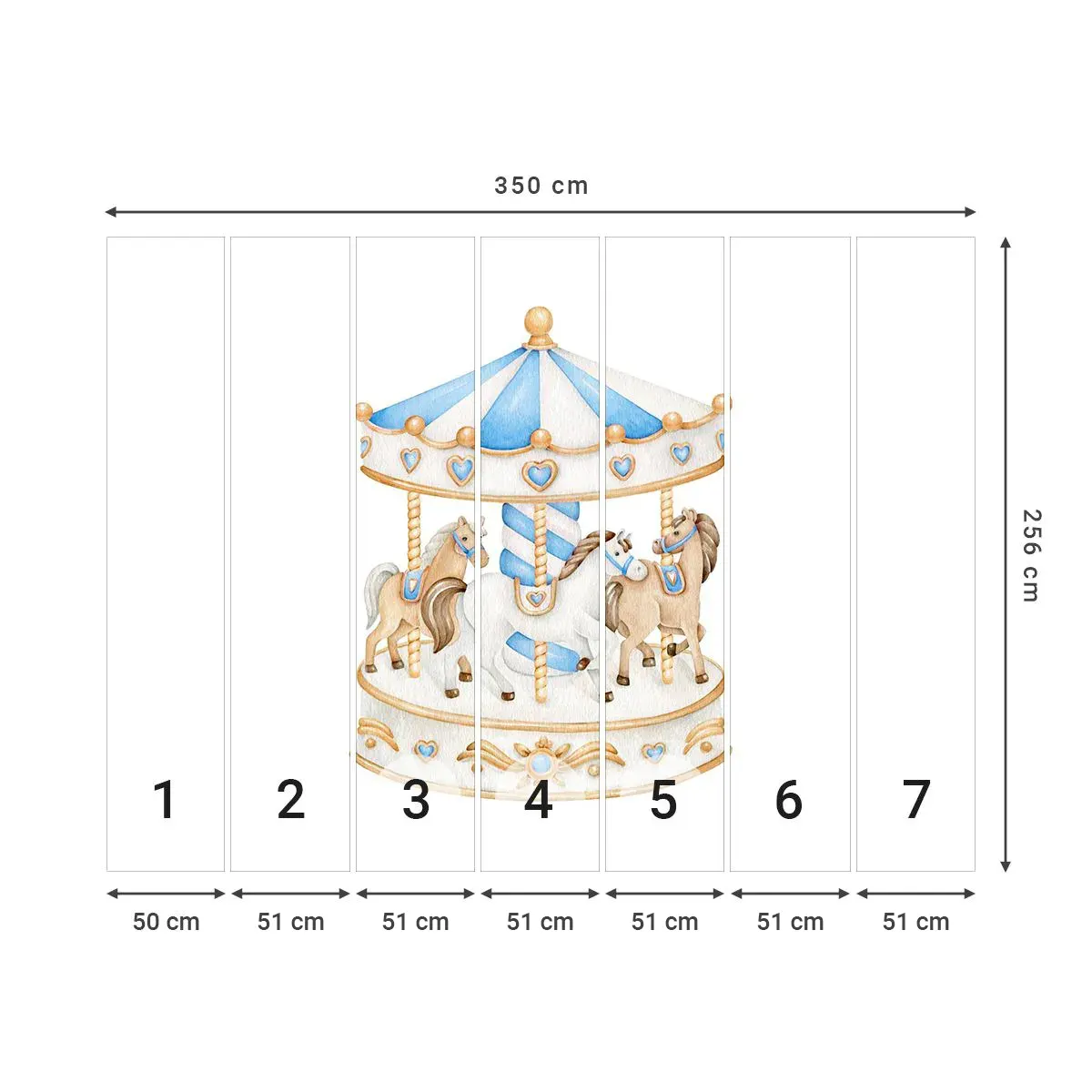 Selbstklebende Fototapete Deluxe Sticker - Süße Kindheit - Pferde, Karussell, Kinder - 350x256 cm