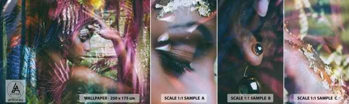 Die matte Textur der Fototapete minimiert Lichtreflexionen und kaschiert so kleine Wandunebenheiten. Moderne Drucktechnologie sorgt für natürlich gesättigte Farben, die dem Innenraum einen einzigartigen Charakter verleihen. Mit dem Muster können Sie das Aussehen des Materials auf einer größeren Fläche beurteilen, bevor Sie eine endgültige Kaufentscheidung treffen.