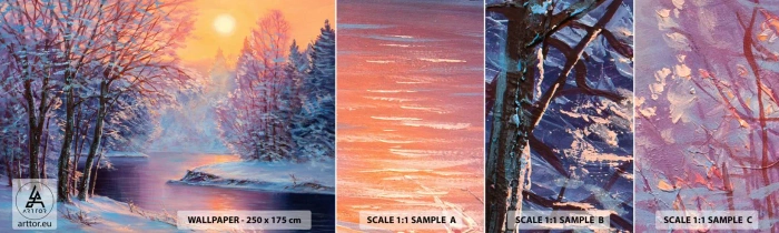 Fototapetenmuster Standard Eco - Die Farben des Winters - Landschaft, Fluss, Wald - 100x30 cm