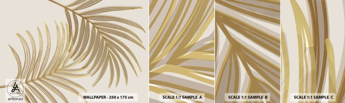 Fototapetenmuster Standard Eco - Goldene Palme! - Abstraktion, Palmblatt, Grafik - 100x30 cm