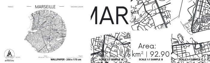 Fototapetenmuster Standard Eco - Anatomie von Marseille - Karte, Marseille, Frankreich - 100x30 cm