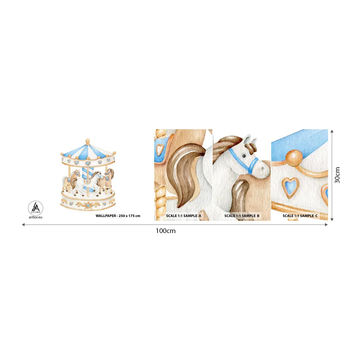 Fototapetenmuster Standard Eco - Süße Kindheit - Pferde, Karussell, Kinder - 100x30 cm