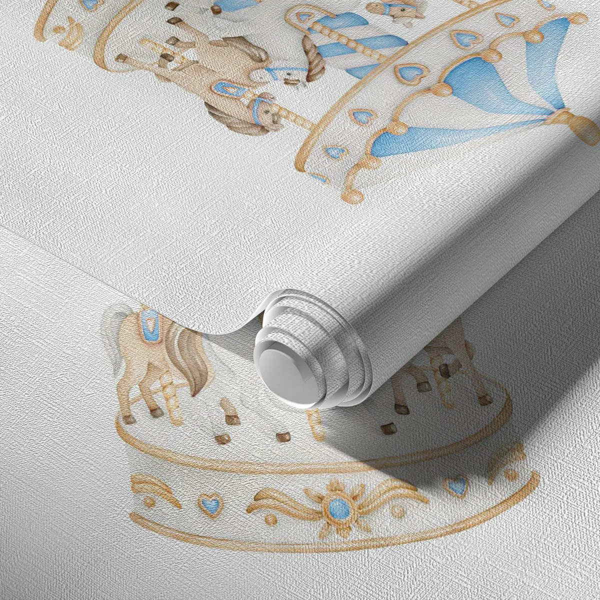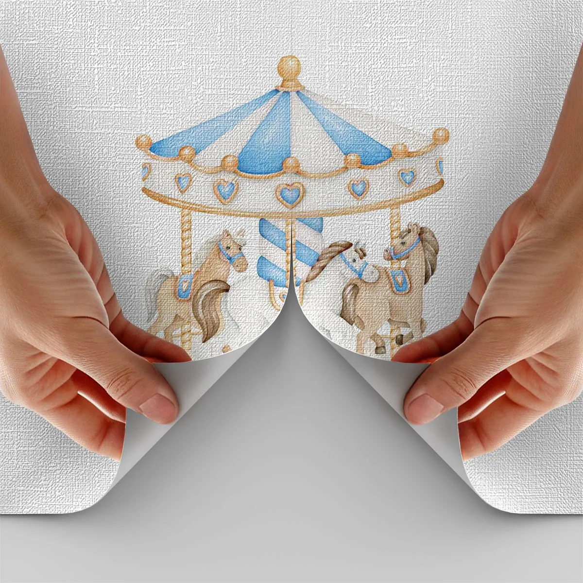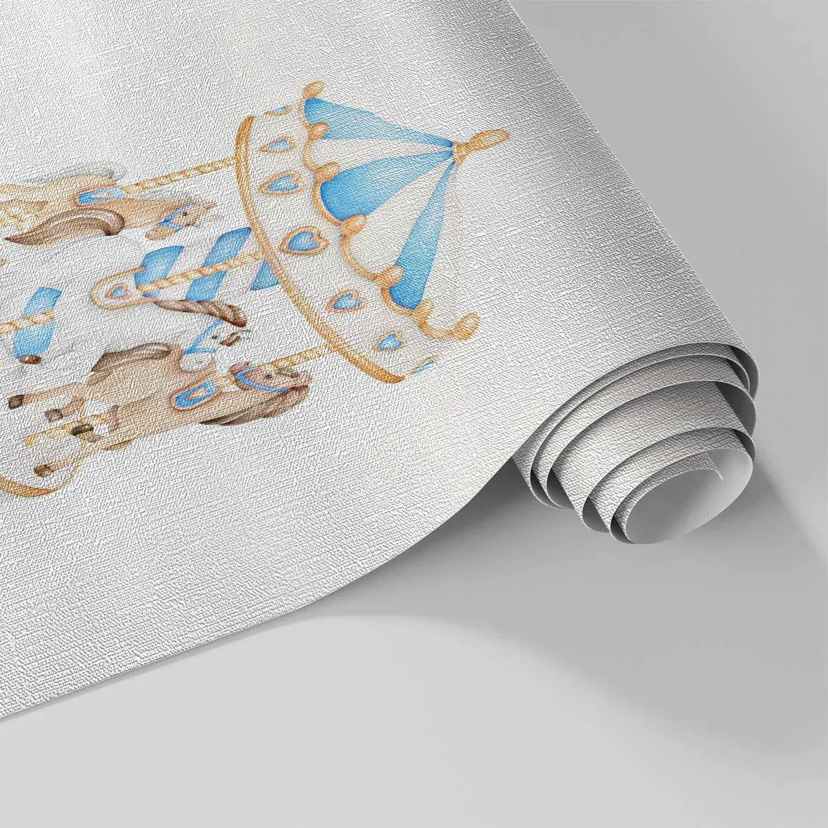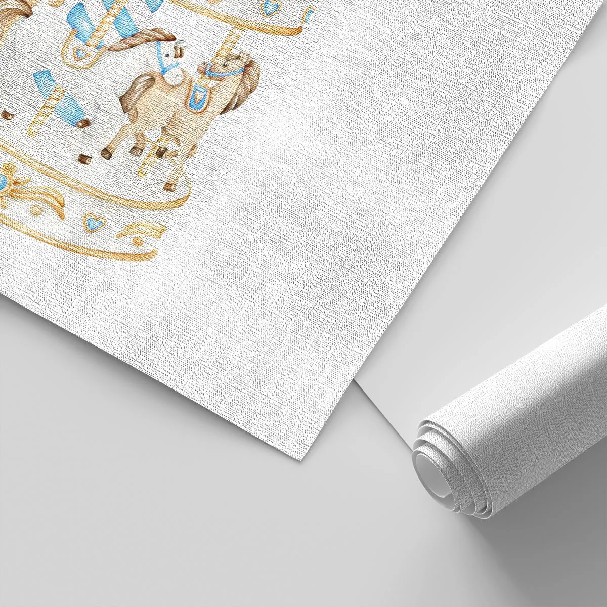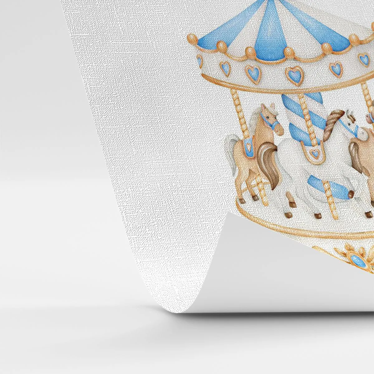 Fototapete Premium Canvas - Ein Karussell in Pastellfarben auf weißem Hintergrund - 100x70cm - Süße Kindheit - Moderne Wanddekoration für Wohnzimmer und Schlafzimmer ARTTOR