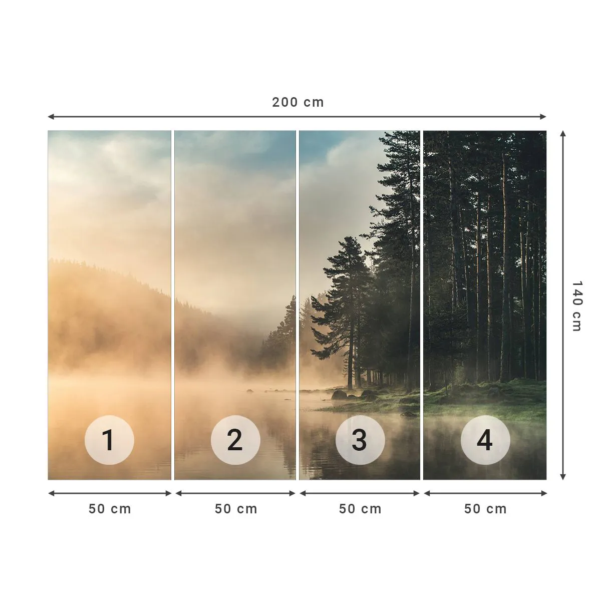 Fototapete Premium Sand - Die Geburt des Tages - Landschaft, See, Wald - 200x140 cm