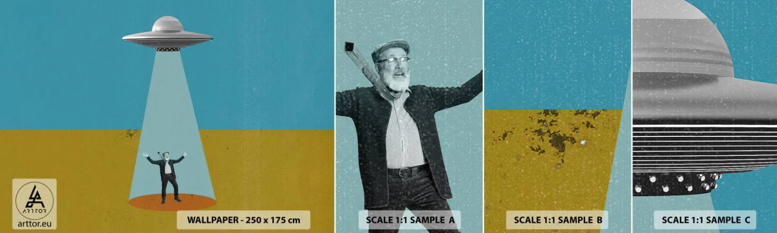 Fototapetenmuster Standard Eco - Nahe Begegnung - UFO, Moderne Kunst, Surrealismus - 100x30 cm