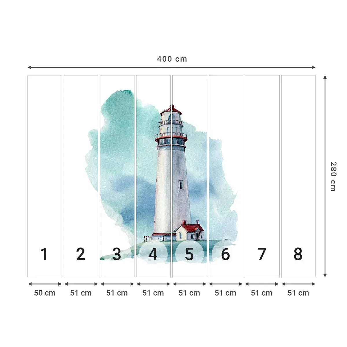 Selbstklebende Fototapete Deluxe Sticker - Sanfte Schwester vom Blau - Leuchtturm, Strand, Zeichnung - 400x280 cm