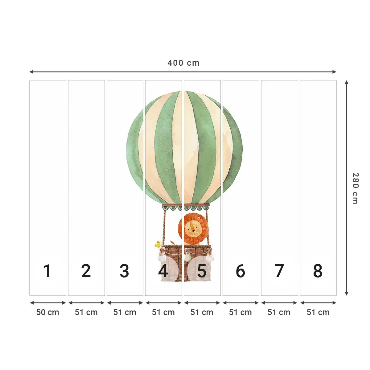 Selbstklebende Fototapete Deluxe Sticker - Leons Reisen - Ballon, Löwe, Kinder - 400x280 cm