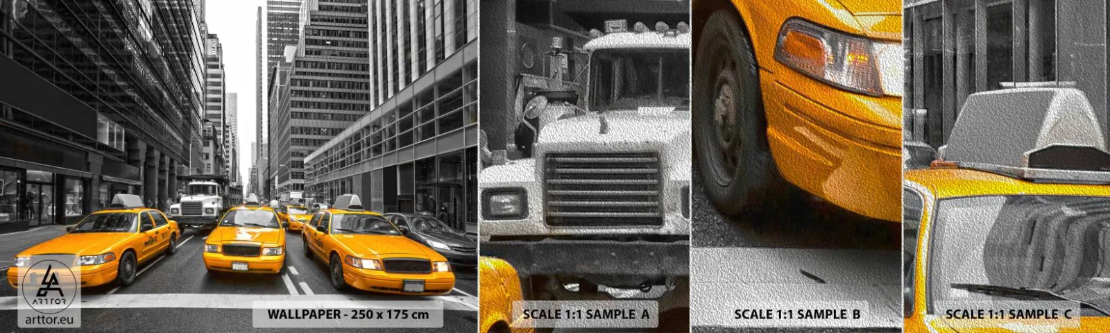 Hohe Grammatur 290g/m2 zusammen mit einer fühlbaren Struktur Leinwand auf der Oberfläche der Tapete macht das Produkt zu einer exklusiven und designorientierten Lösung für jeden, der auf der Suche nach einzigartigen Innenraumdekorationen ist. Der Vorteil des außergewöhnlichen Materials in dicker Ausführung ist auch eine hervorragende Abdeckung, die gleichzeitig die Montage erheblich erleichtert. Struktur Fototapete PREMIUM CANVAS vermittelt den Eindruck eines Drucks auf dickem Leinwand.