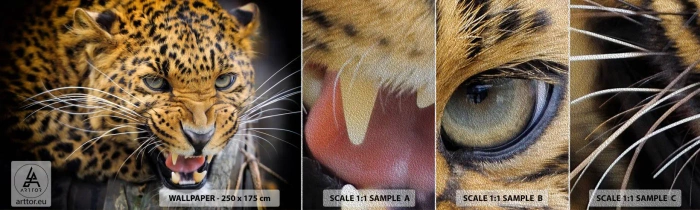 Fototapeten Muster Premium Sand - Bleib zurück, ich warne dich! - Tiere, Leopard, Wilde Katze - 100x30 cm