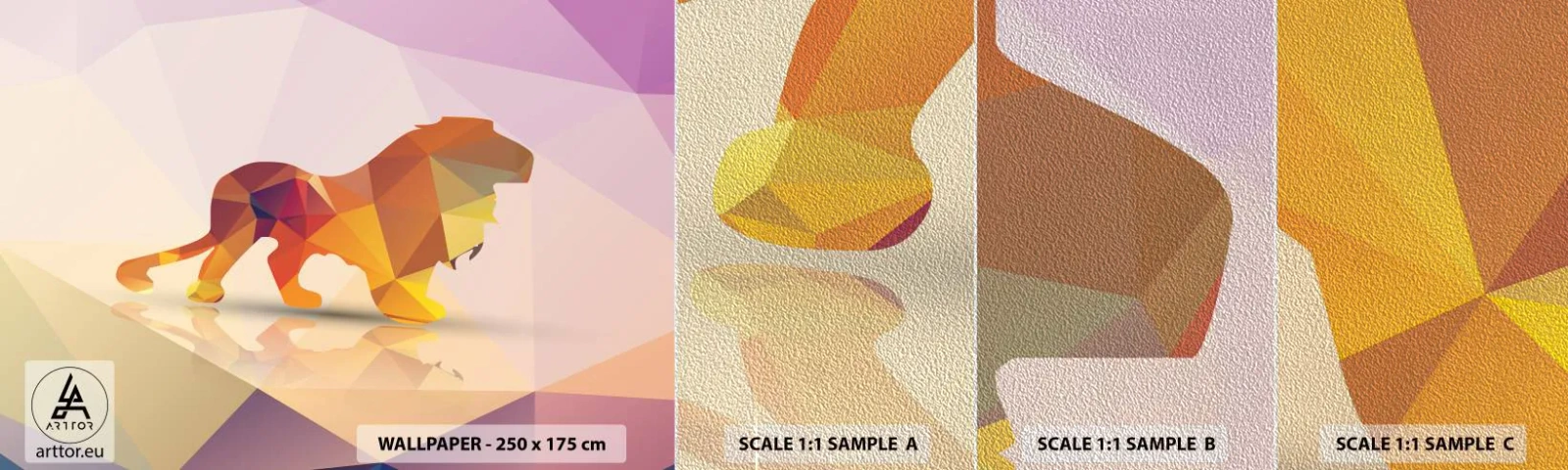Fototapeten Muster Premium Sand - Der Diamantenkönig - Tiere, Löwe, Geometrische Figur - 100x30 cm