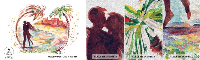 Die matte Textur der Fototapete minimiert Lichtreflexionen und kaschiert so kleine Wandunebenheiten. Moderne Drucktechnologie sorgt für natürlich gesättigte Farben, die dem Innenraum einen einzigartigen Charakter verleihen. Mit dem Muster können Sie das Aussehen des Materials auf einer größeren Fläche beurteilen, bevor Sie eine endgültige Kaufentscheidung treffen.