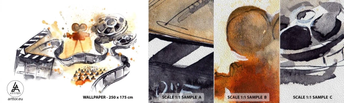 Fototapeten Muster Premium Sand - Im Land der Träume - Filmprojektor, Filmrolle, Kinematographie - 100x30 cm